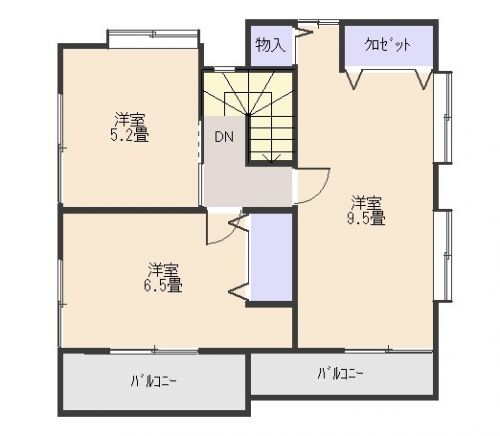 | 間取り | 3LDK(リビングダイニングキッチン 14.2帖(1階)、洋室 9.5帖(2階)、洋室 6.5帖(2階)、洋室 5.2帖(2階)) | ||